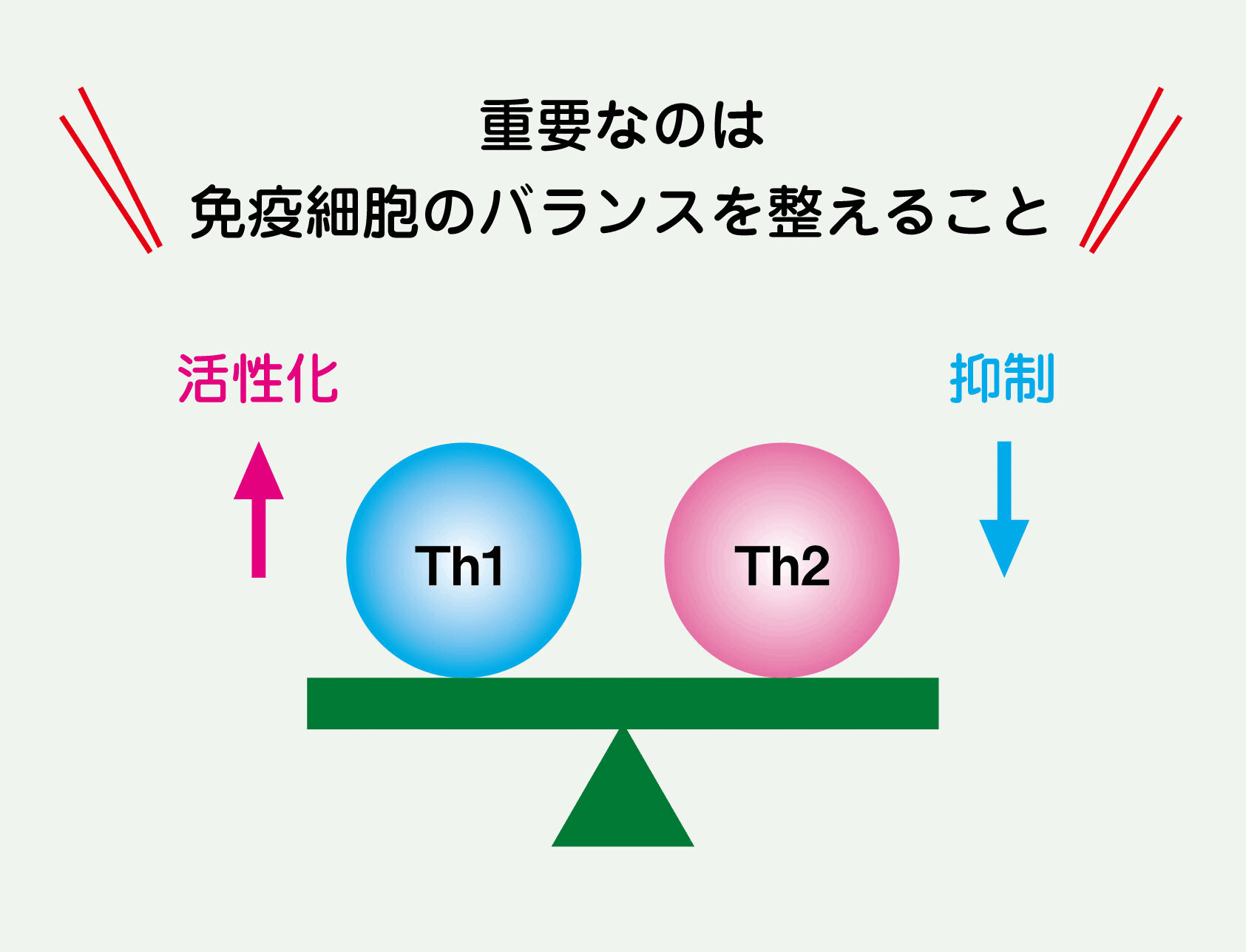 Th1 を活性化することで、相対的に Th2 を抑制し、免疫バランスを整えるという方法があります。